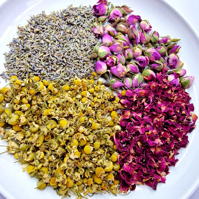 Innihald: Lavender (lífrænt), Kamilla (lífræn), Þurrkuð æt rósablöð, Ætar rósir.
