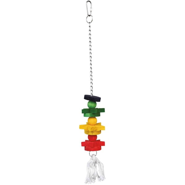 Tré kubba á keðju. Gott nagdót fyrir stærri fugla.