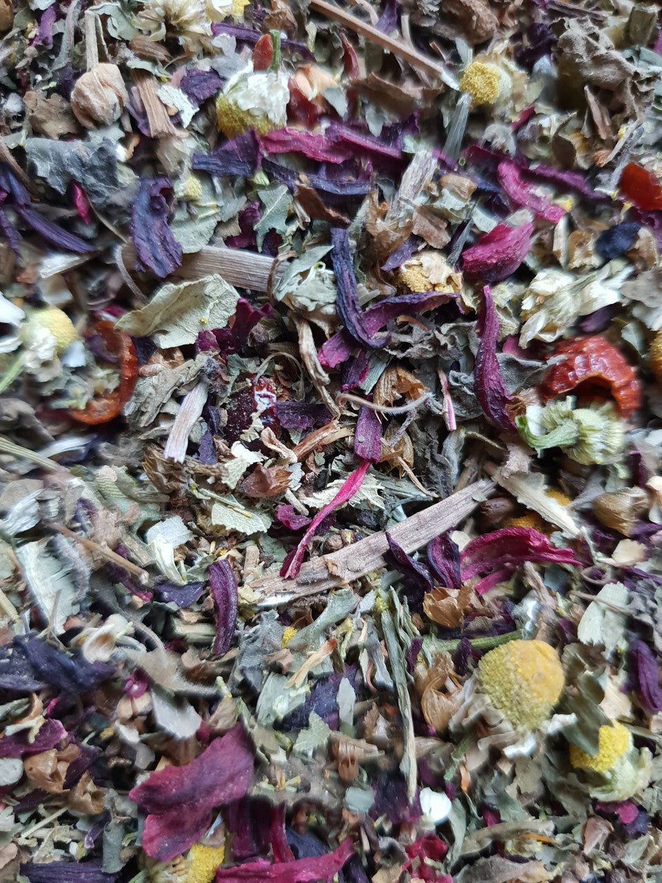 Innihald: Hibiskus blóm, Rosehip, Tulsi lauf, Lindiblóm, Fífla blöð og Kamillu blóm.